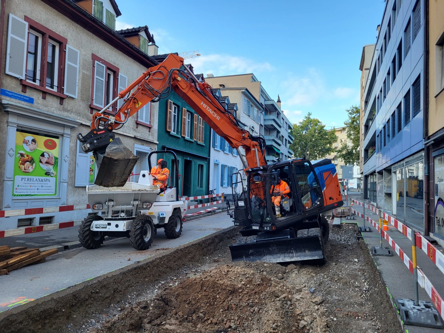 Staub, Lärm und Abgase von Baumaschinen mit Dieselmotor: Das sind typische Begleiterscheinungen von Baustellen. Pilot-Baustellen in den Städten Basel, Zürich und Luzern sollen zeigen, dass es ruhiger und mit weniger CO2-Emissionen geht. Eingesetzt werden dabei unter anderem batterieelektrische Bagger. Die Entwicklung dieser E-Bagger hat das Bundesamt für Energie (BFE) im Rahmen des Pilot- und Demonstrationsprogramms unterstützt.