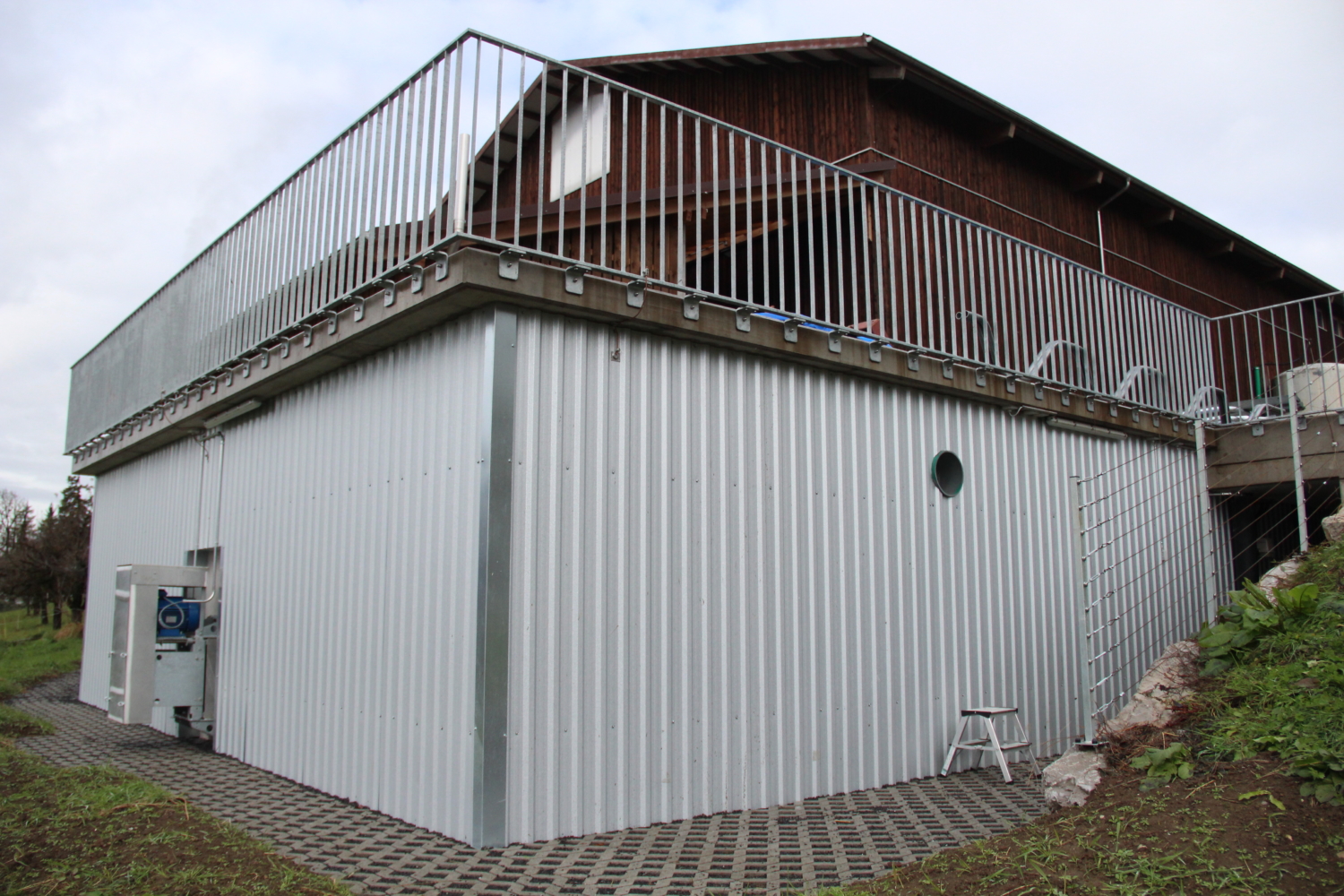 Im weissen Teil des Gebäudes befindet sich die Vergärungsanlage, der Fermenter. Bild: BFE – Brigitte Mader