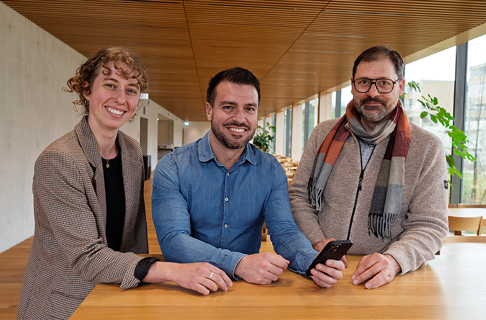 Das Team der Sektion Geoinformation und Digital Innovation steht hinter der Entwicklung der neuen BFE-Schnittstelle. Von links nach rechts. Dominique Luder, Lucas Tochtermann, Jean-Martin Dénis; Bild: BFE